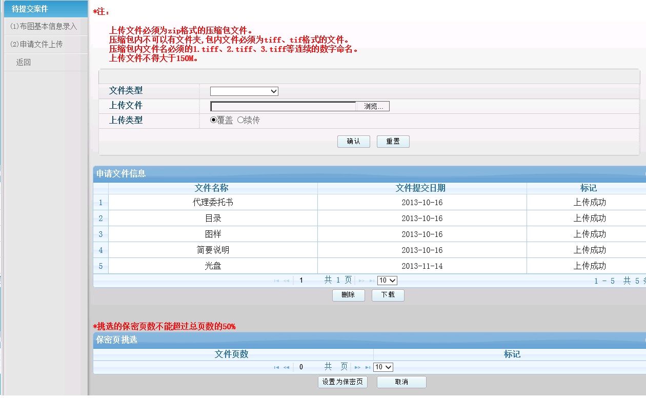 b)点击已经上传的"图样",可以在保密页挑选列表中,通过"设置为保密页"按钮设置为保密页。