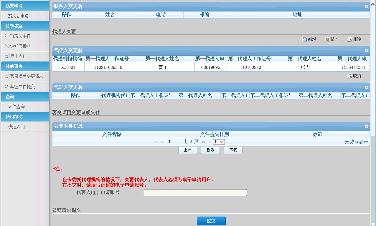 注: 此处的"提交"按钮,是将所有著变的信息提交审查系统,并不是单独指提交上传的"著变证明文件"。